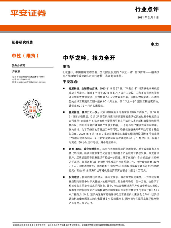 【平安证券】【20210201】电力行业:中华龙吟,核力全开-3页 行业研究