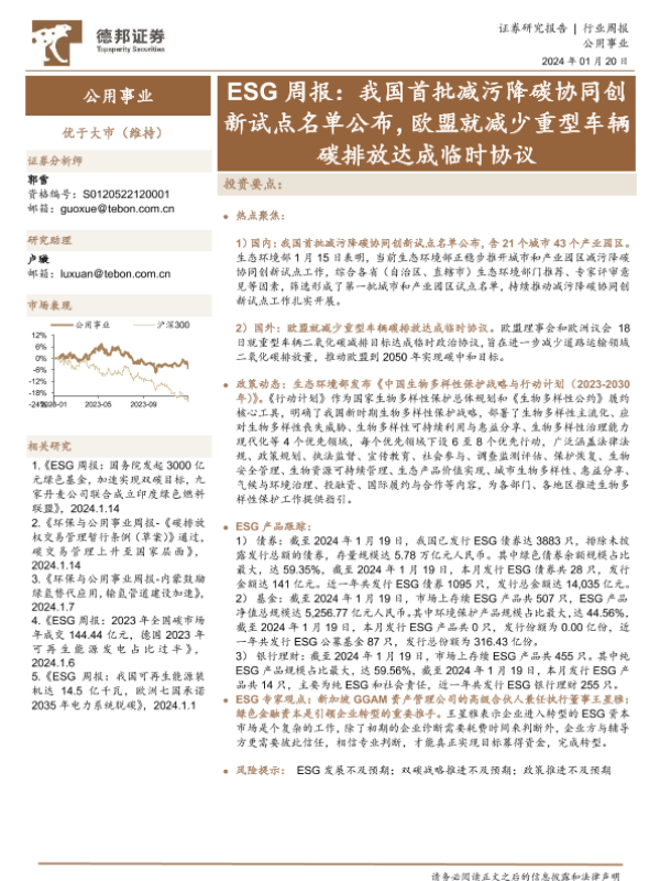 【德邦证券】【20240120】我国首批减污降碳协同创新试点名单公布,欧盟就减少重型车辆碳排放达成临时协议-15页 行业研究