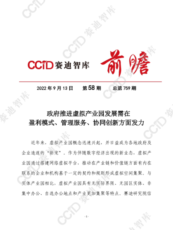 【赛迪研究院信息化与软件产业研究所】【202209】政府推进虚拟产业园发展需在盈利模式、管理服务、协同创新等方面发力-10页 行业研究