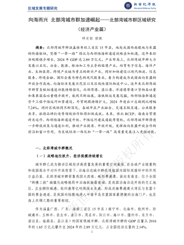 【研发部】【2024】向海而兴北部湾城市群加速崛起——北部湾城市群区域研究(经济产业篇)-15页 行业研究