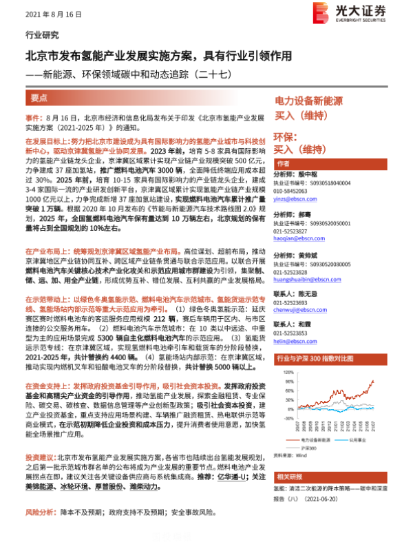【光大证券】【20210816】北京市发布氢能产业发展实施方案,具有行业引领作用-2页 行业研究
