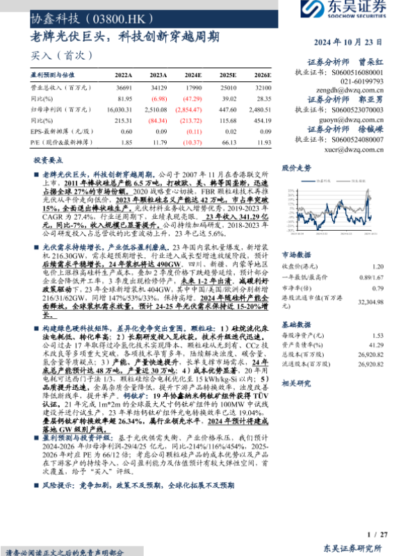 【东吴证券】【20241023】协鑫科技(03800.HK)老牌光伏巨头,科技创新穿越周期-27页 行业研究