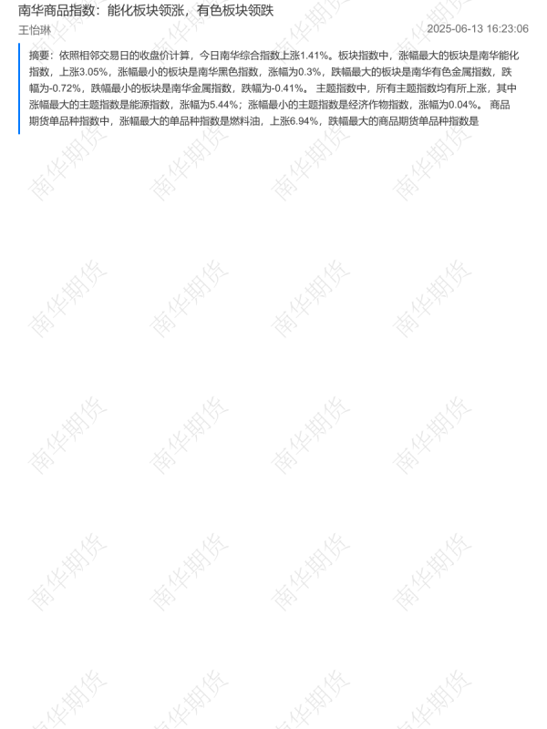 【南华期货】【20250613】南华商品指数:能化板块领涨,有色板块领跌-2页 证券期货研究报告