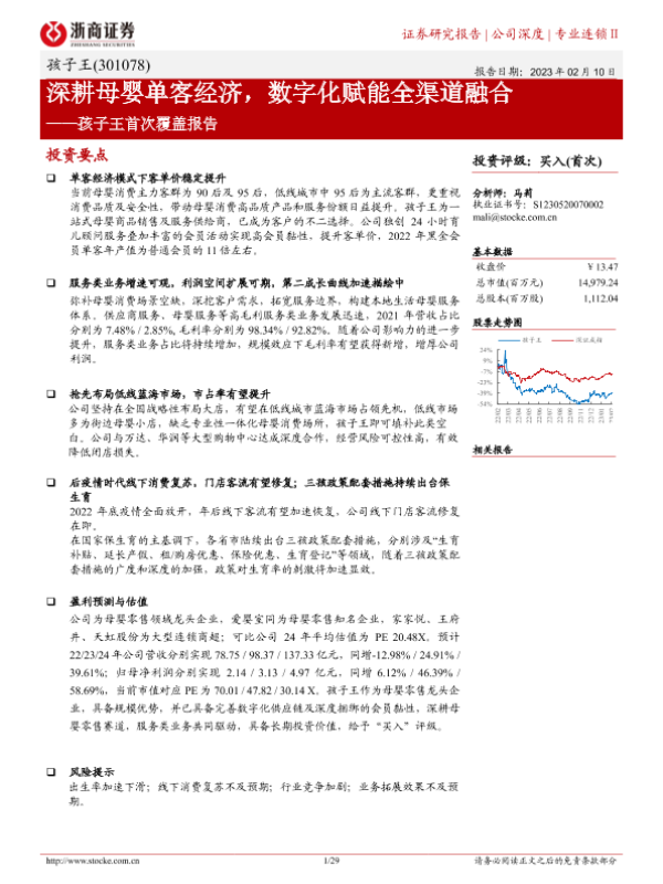 【浙商证券】【20230210】孩子王首次覆盖报告:深耕母婴单客经济,数字化赋能全渠道融合-29页 行业研究