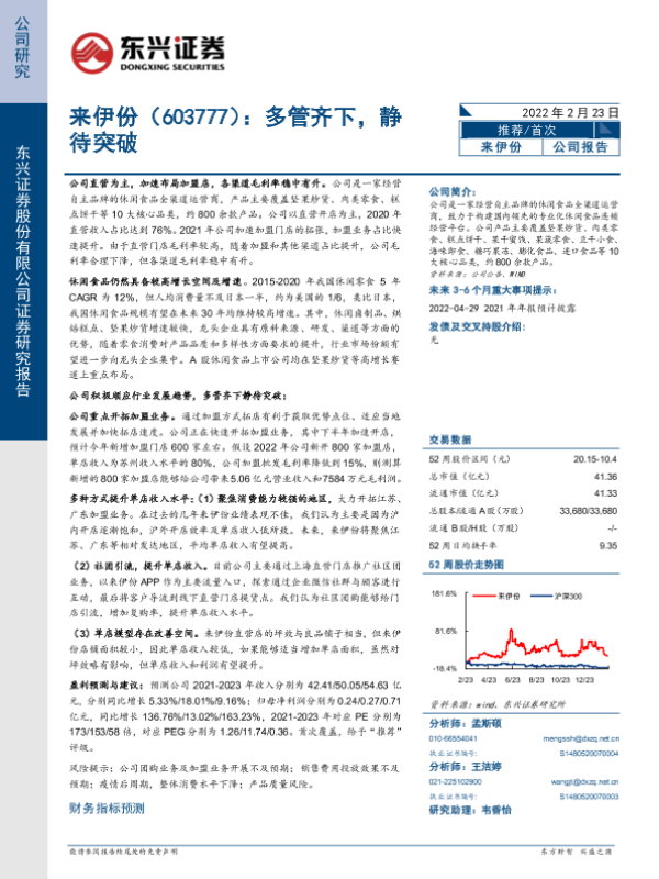 【东兴证券】【20220223】来伊份(603777):多管齐下,静待突破-29页 行业研究