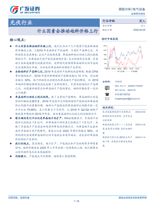 【广发证券】【20200205】光伏行业:什么因素会推动硅料价格上行-10页 行业研究