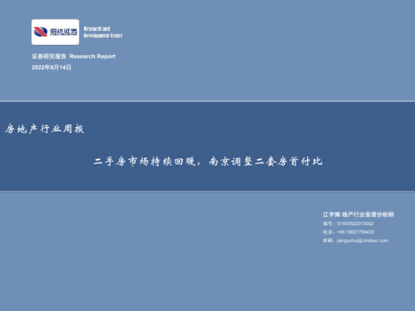 【信达证券】【20220814】房地产行业周报:二手房市场持续回暖,南京调整二套房首付比-24页 行业研究