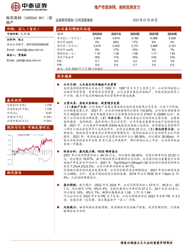 【市值风云 App】【202407】5年爆赚102亿,分红31亿,PB 0.6,ROE 12%,市值仅100亿:拆解南京高科的股价真相-21页 行业研究