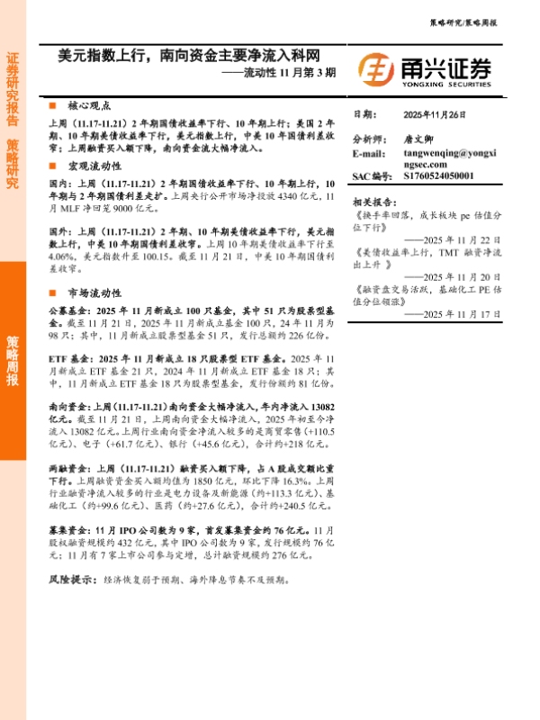 【甬兴证券】【202511】美元指数上行,南向资金主要净流入科网-10页 证券期货研究报告