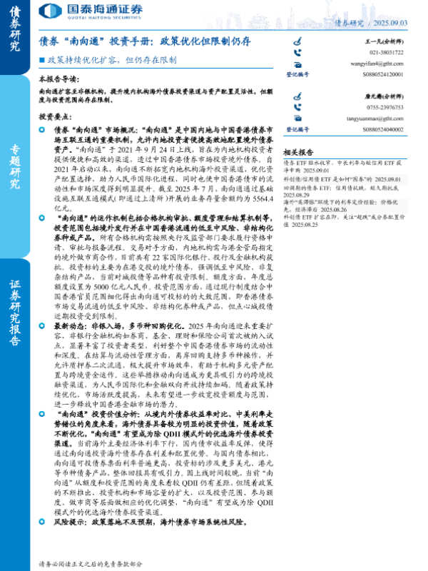 【国泰海通证券】【202509】债券“南向通”投资手册:政策优化但限制仍存-10页 证券期货研究报告