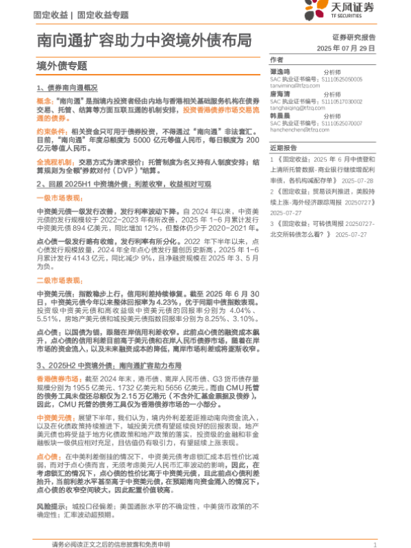 【天风证券】【202507】境外债专题:南向通扩容助力中资境外债布局-35页 证券期货研究报告