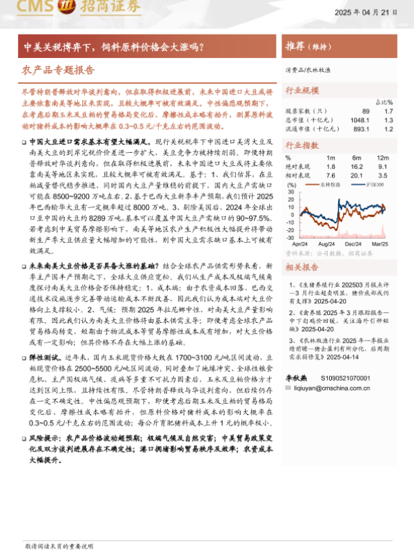 【海通证券】【20250421】农林牧渔行业农产品专题报告:中美关税博弈下,饲料原料价格会大涨吗?-12页 行业研究