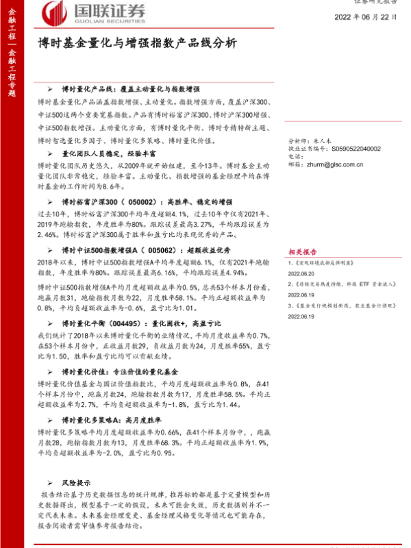 【国联证券】【20220622】博时基金量化与增强指数产品线分析-17页 行业研究