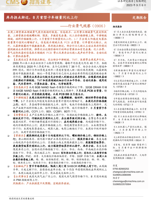【海通证券】【20230906】行业景气观察:库存拐点渐近,8月重型卡车销量同比上行-27页 行业研究