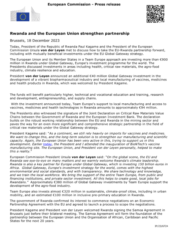 【European Commission】【20231218】卢旺达和欧盟加强伙伴关系-1页 会议纪要