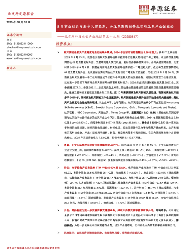 【华源证券】【202508】北交所科技成长产业跟踪第三十九期:8月商业航天发射步入密集期,关注星图测控等北交所卫星产业链标的-21页 证券期货研究报告