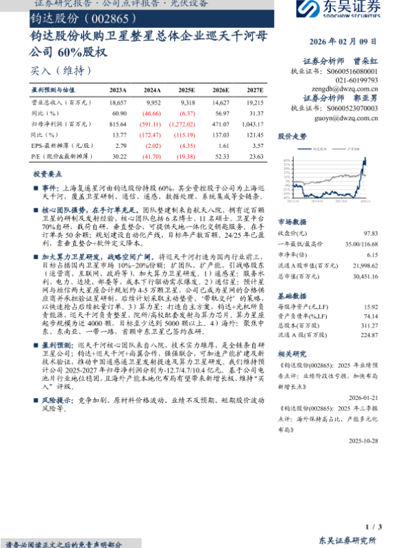 【东吴证券】【202602】钧达股份收购卫星整星总体企业巡天千河母公司60%股权-3页 证券期货研究报告