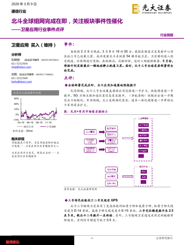 【光大证券】【20200309】卫星应用行业事件点评:北斗全球组网完成在即,关注板块事件性催化-3页 行业研究