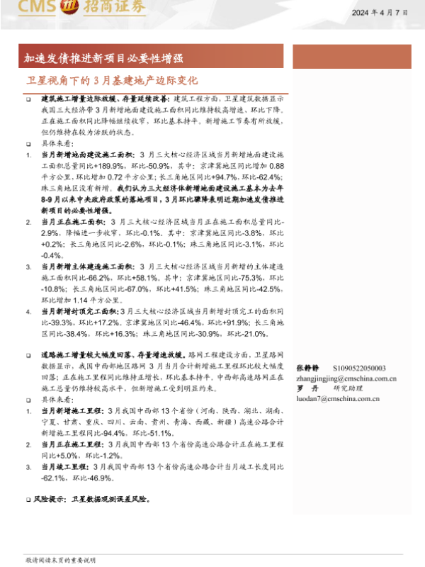 【海通证券】【20240407】卫星视角下的3月基建地产边际变化:加速发债推进新项目必要性增强-11页 行业研究