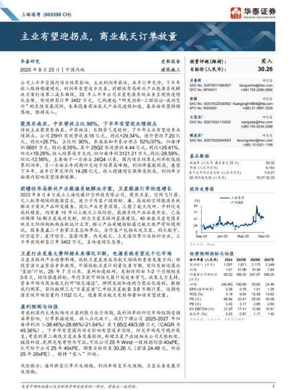 【华泰证券】【202509】上海港湾(605598 CH)主业有望迎拐点,商业航天订单放量-17页 公司研究