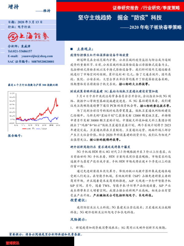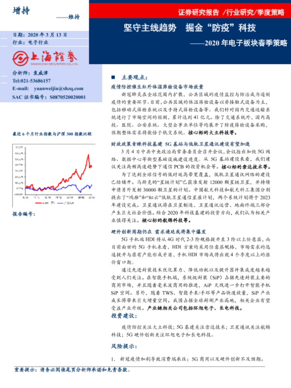 【上海证券】【20200313】2020年电子板块春季策略:坚守主线趋势 掘金“防疫”科技-30页 行业研究