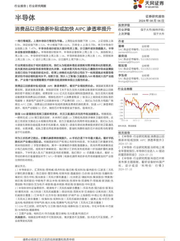 【天风证券】【20240806】20240806-天风证券-半导体行业研究周报:消费品以旧换新补贴或加快AIPC渗透率提升-41页 行业研究