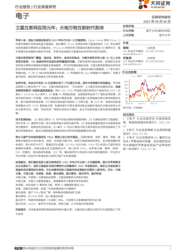 【天风证券】【20210905】电子行业深度研究:卫星互联网应用元年,天地万物互联时代到来-53页 行业研究