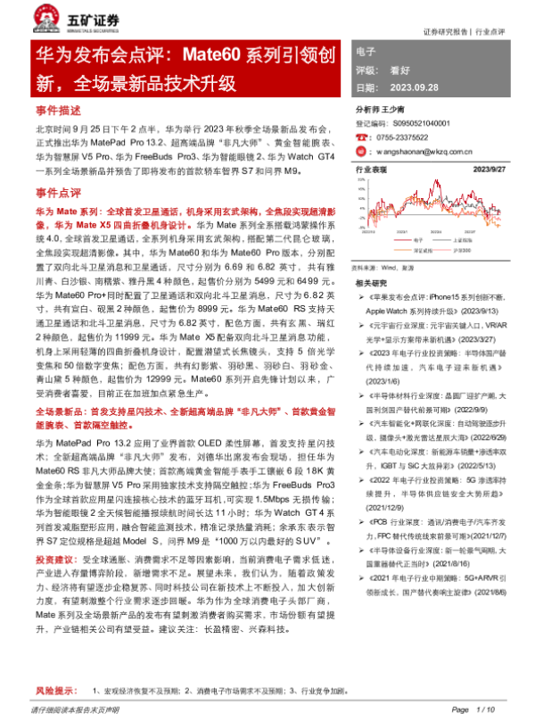【五矿证券】【20230928】华为发布会点评:Mate60系列引领创新,全场景新品技术升级-10页 行业研究