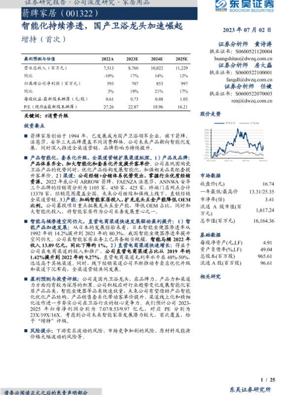 【东吴证券】【20230702】箭牌家居-智能化持续渗透,国产卫浴龙头加速崛起-25页 行业研究