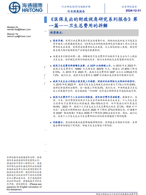 【海通国际】【20241231】医保支出的财政视角研究系列报告第一篇-卫生总费用的拆解-19页 行业研究
