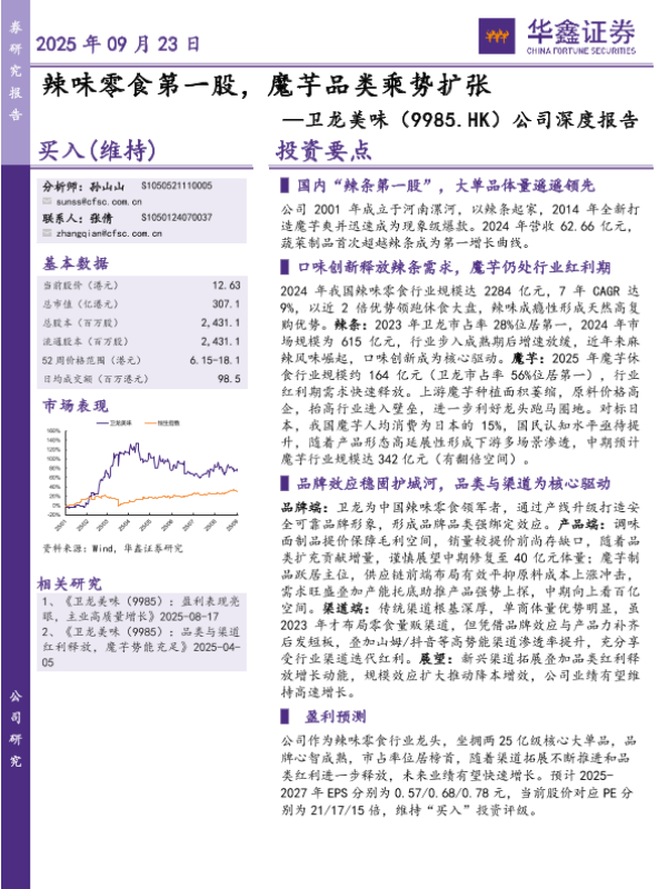 【华鑫证券】【202509】辣味零食第一股,魔芋品类乘势扩张-33页 证券期货研究报告