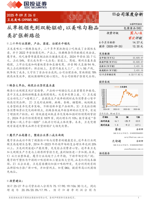 【国投证券】【202509】从单极领先到双轮驱动,以美味勾勒品类扩张新路径-26页 证券期货研究报告