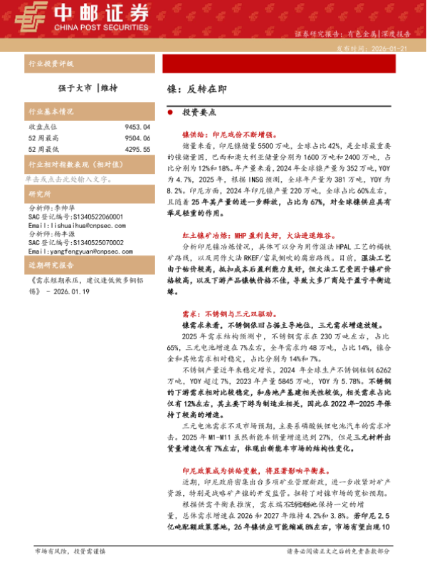 【中邮证券】【202601】有色金属|深度报告:镍:反转在即-18页 证券期货研究报告