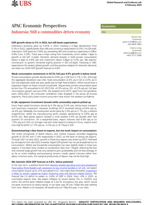 【UBS AG&Singapore Branch】【20240206】APAC Economic Perspectives Indonesia Still a commodities driven economy-8页 宏观策略