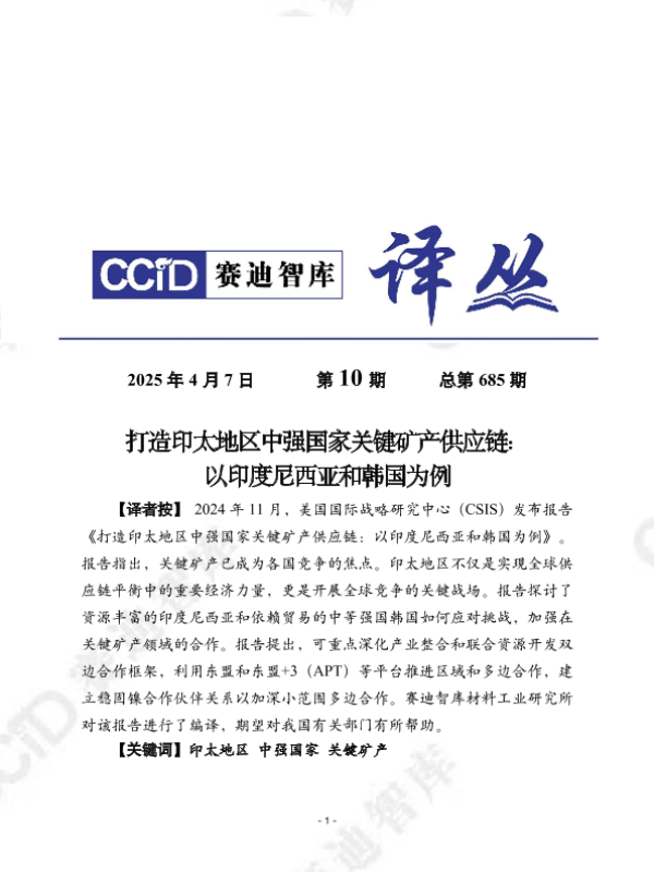 【美国国际战略研究中心(CSIS)】【202411】打造印太地区中强国家关键矿产供应链:以印度尼西亚和韩国为例-24页 行业研究