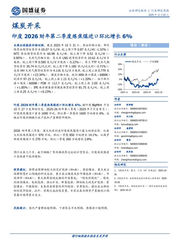 【国盛证券】【202511】煤炭开采:印度2026财年第二季度炼焦煤进口环比增长6%-13页 证券期货研究报告