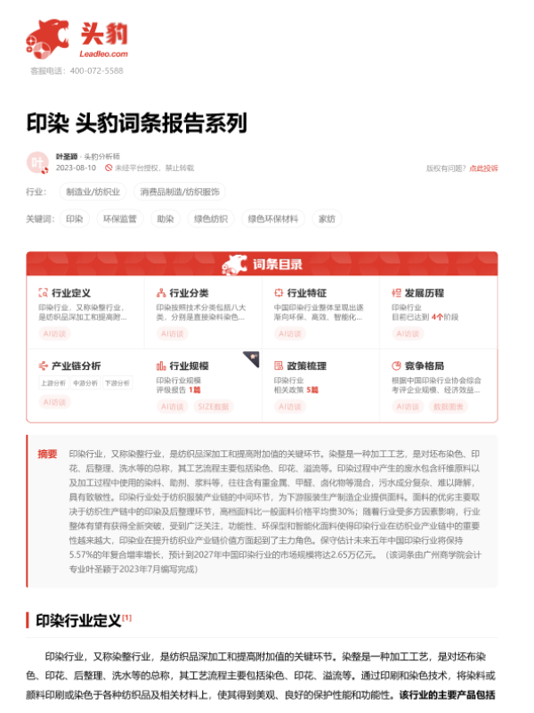 【头豹研究院】【2023】印染 头豹词条报告系列-23页 行业研究