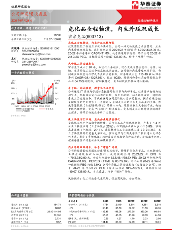 【华泰证券】【20200721】密尔克卫-603713.SH-危化品全程物流,内生外延双成长-20页 行业研究