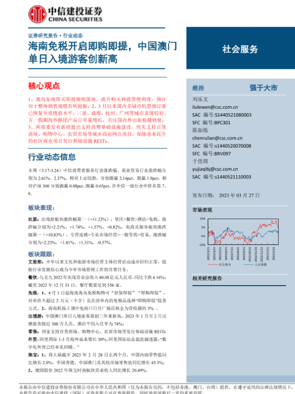 【中信建投证券】【20230327】社会服务行业:海南免税开启即购即提,中国澳门单日入境游客创新高-27页 行业研究