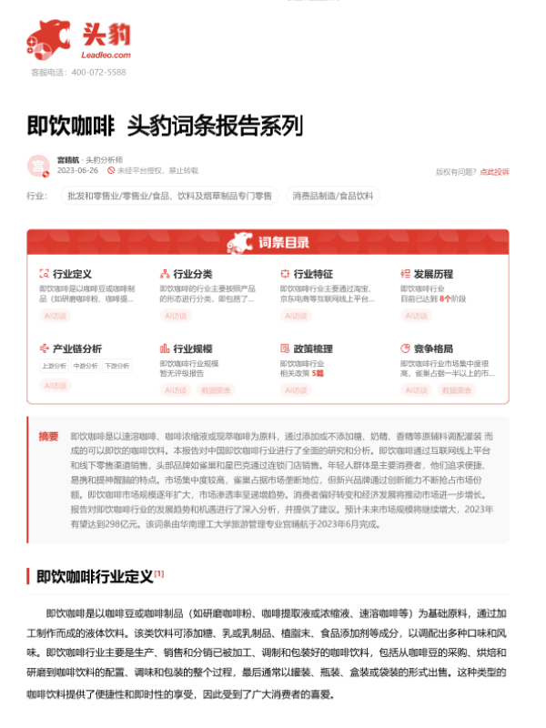 【头豹研究院】【20230922】即饮咖啡 头豹词条报告系列-17页 行业研究