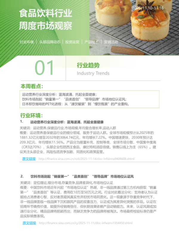 【艾瑞咨询】【202511】食品饮料行业周度市场观察-8页 市场调研