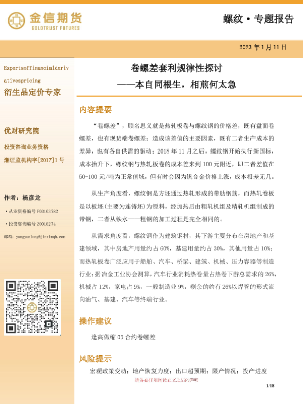【金信期货】【20230111】螺纹·专题报告:卷螺差套利规律性探讨,本自同根生,相煎何太急-18页 行业研究
