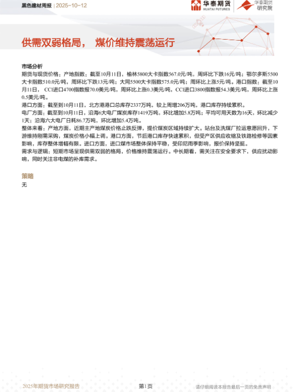 【华泰期货】【202510】黑色建材周报 | 2025-10-12-7页 证券期货研究报告