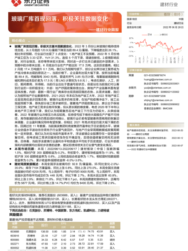 【东方证券】【20220628】建材行业周报:玻璃厂库首现回落,积极关注数据变化-22页 行业研究