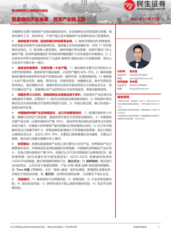 【民生证券】【20231111】新消费行业研究之咖啡系列报告:复盘咖啡历史发展,溯源产业链上游-41页 行业研究