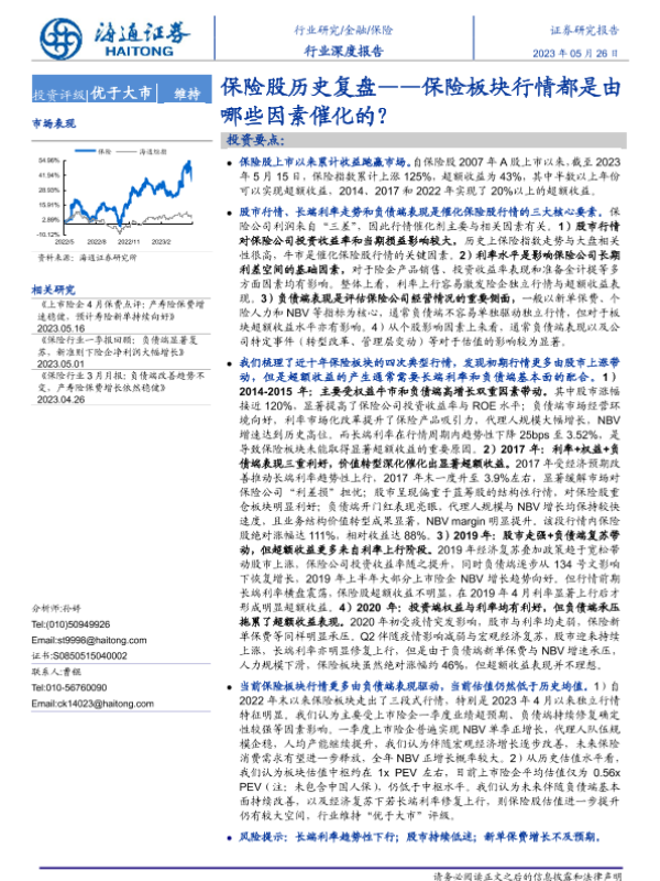 【海通证券】【20230526】保险行业深度报告:保险股历史复盘-保险板块行情都是由哪些因素催化的?-33页 行业研究