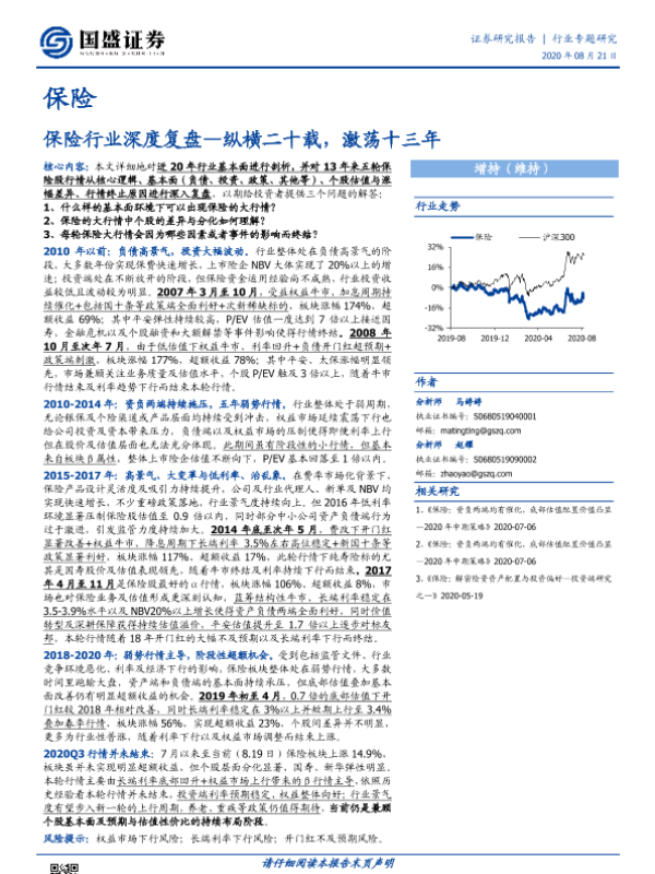 【国盛证券】【20200821】保险行业深度复盘—纵横二十载,激荡十三年-44页 行业研究