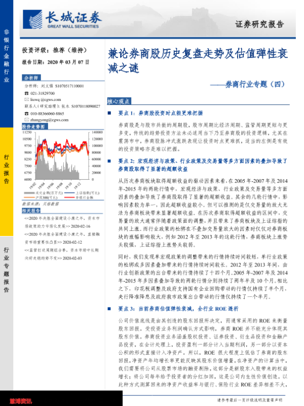 【长城证券】【20200307】券商行业专题:兼论券商股历史复盘走势及估值弹性衰减之谜-49页 行业研究