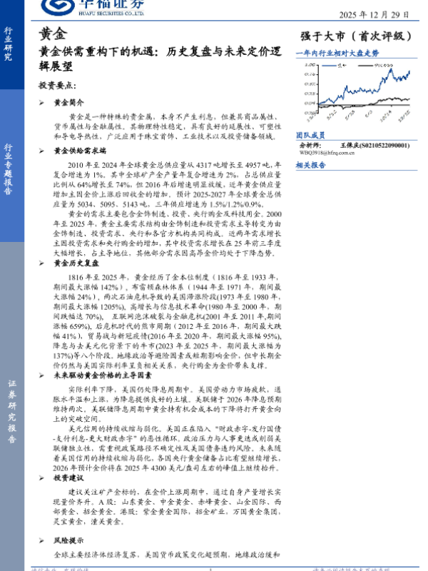 【华福证券】【202512】黄金供需重构下的机遇:历史复盘与未来定价逻辑展望-28页 证券期货研究报告