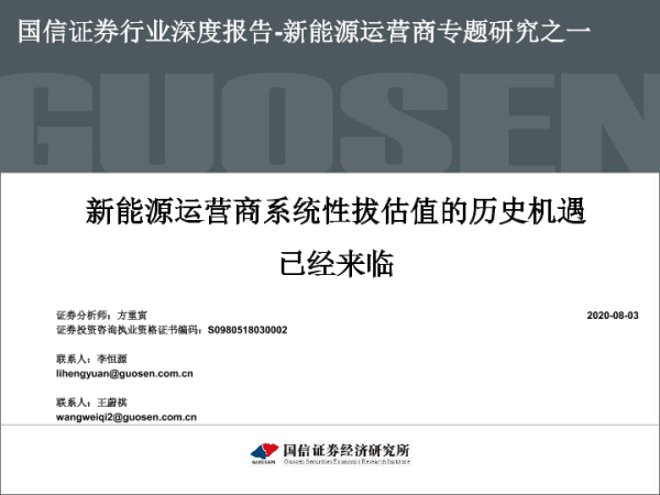 【国信证券】【20200803】新能源运营商专题研究之一:新能源运营商系统性拔估值的历史机遇已经来临-28页 行业研究
